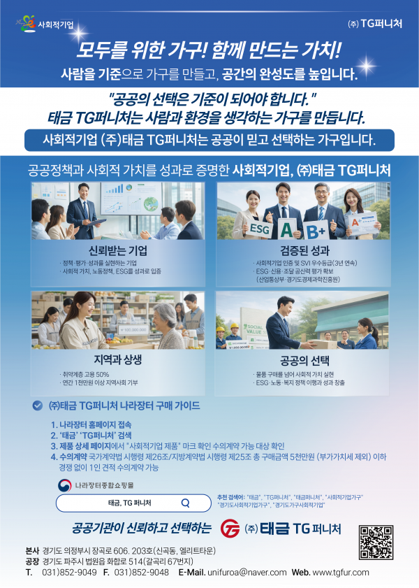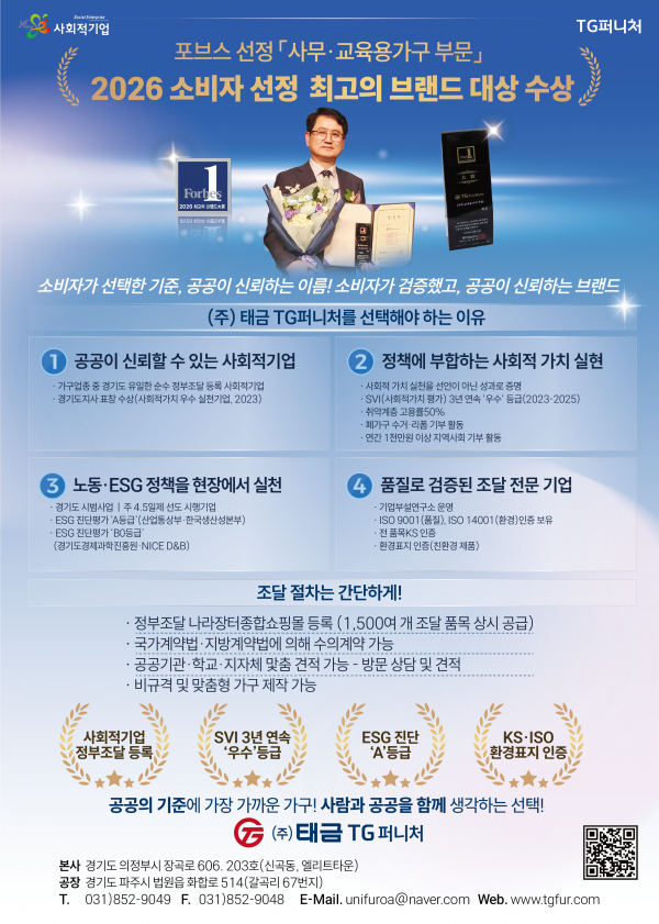 소비자가 선택한 기준, 공공이 신뢰하는 이름! 소비자가가 검증했고, 공공이 신뢰하는 브랜드! TG퍼니처 페이지 정보 작성자 주식회사태금 댓글 0건 조회 5회 작성일26-03-16 08:54 본문 소비자가 선택한 기준, 공공이 신뢰하는 이름! 소비자가가 검증했고, 공공이 신뢰하는 브랜드! TG퍼니처 목록보기