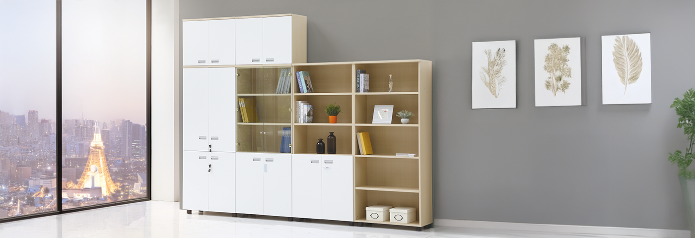 The double-door cabinet offers ample storage space and a convenient opening mechanism, providing an efficient office environment. The design with doors that open on both sides enhances space utilization, while various locking options strengthen security.