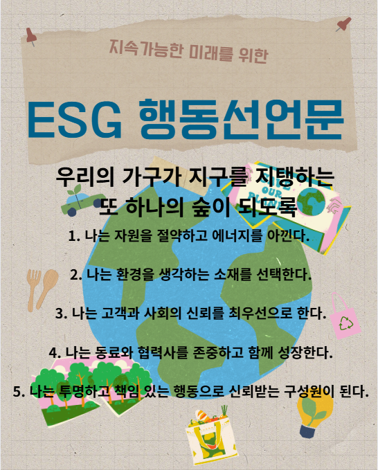 환경을 지키고, 사회적 가치를 실천하며, 투명한 경영으로 함께 성장합니다.