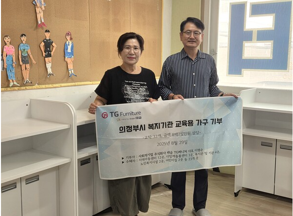 의정부시에 위치한 사회적기업 ㈜태금 TG퍼니처(대표 이평순)가 지난 8월29일 지역 내 복지기관 23곳에 교육용 교탁 32개(870만원 상당)를 기부하며 지역사회 나눔 활동을 이어갔다.
