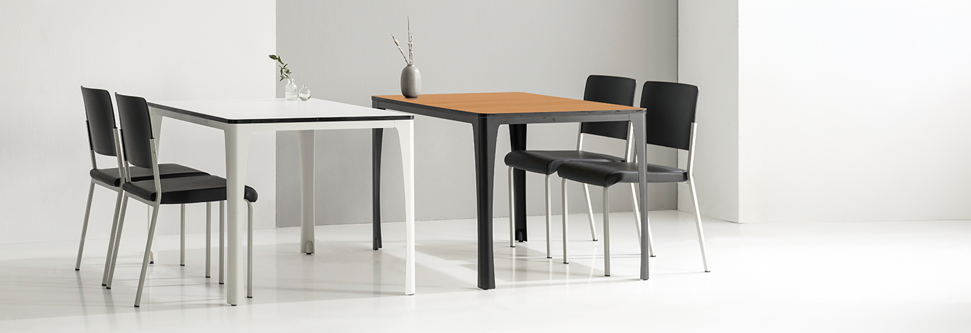 우수한 내구성과 깔끔한 디자인이 믹스된 식탁시리즈로, 하부 중간 프레임은 견고함을 더욱 돋보이게 합니다.